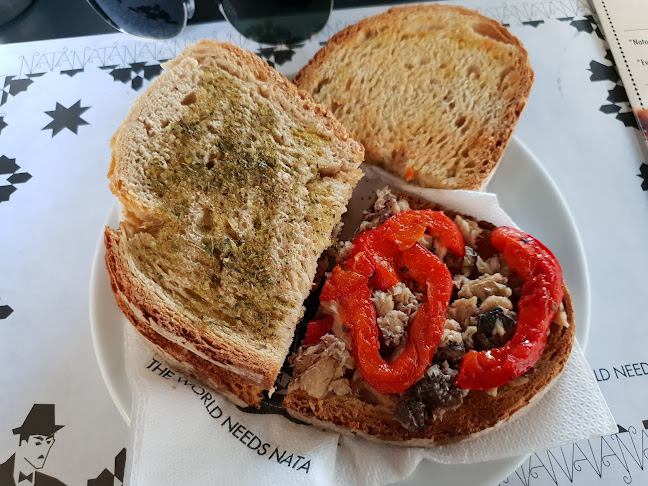 Ótimo serviço! A garçonete nos ofereceu um cardápio em inglês quando nos viu lutando para entender a versão em português. Legal! Gosto da variedade de bebidas oferecidas, especialmente das bebidas quentes. Meu parceiro, um amante de café, pediu uma xícara grande de café Americano e ficou muito feliz com isso. Para mim, optei por um sanduíche de sardinha com pimentão vermelho assado (pimentão). O pão estava bem torrado e temperado com azeite. Foi gostoso. Escolhi uma xícara de carioca de limão, um simples drink de raspas de limão em água quente que me caiu bem.