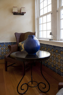Tem um toque tradicional começando na chegada, onde você vê essas duas grandes portas azuis pelas quais você entra. As obras de arte, os azulejos, a arquitetura e o esquema de cores são tradicionais e uma bela referência ao passado.
