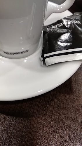 O café é Nespresso. Tem uma enorme variedade de chocolates. Recomendo