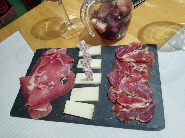 Tapas recomendadas, presunto e queijo muito saborosos.