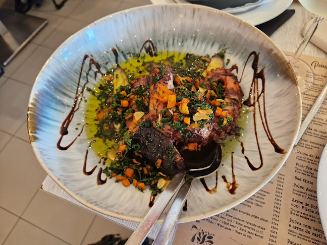 Lugar magnífico para cenar, el sitio es acogedor y bonito, diferente de los demás restaurantes de Elvas, la comida es increíble, nosotros pedimos las gambas a la plancha peladas con aceite y ajo, atún al pistacho poco hecho increíble, y un bacalao de muerte. Nos quedamos con ganas de probar más platos la verdad, la comida espectacular pero lo más importante, el servicio inmejorable pues los camareros son simpáticos y atentos y el dueño súper simpático y agradable, incluso el cocinero salió a preguntarnos y fue muy majo. Nos invitaron a chupitos de cereza con canela hecho casero por el padre del dueño, un detalle. Y todo esto en perfecto español pues hablan mejor que nosotros nuestro idioma. Volvería sin dudarlo.