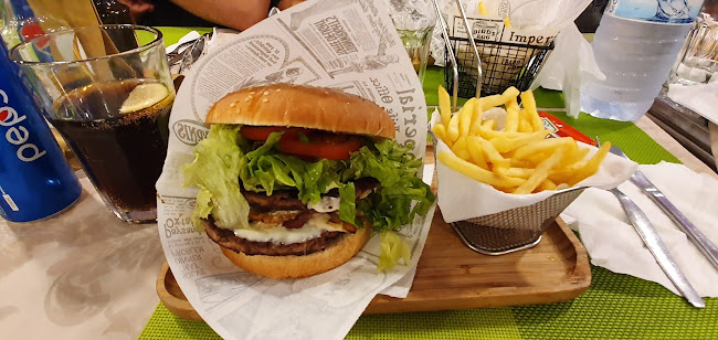 (Translated) Bom lugar para almoçar ou jantar com crianças ou em grupos. A comida é variada (hambúrgueres, pizzas, carnes, etc) eo lugar é muito espaçoso. Eles levam embora se você preferir levar com você.