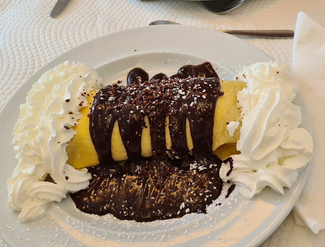 Confusa com a quantidade de louça em cima da mesa,porém um bom serviço e uma variedade de pratos. Comi um peixe galo com arroz de mar que por sinal estava muito bom. Deixou a desejar as sobremesas.
